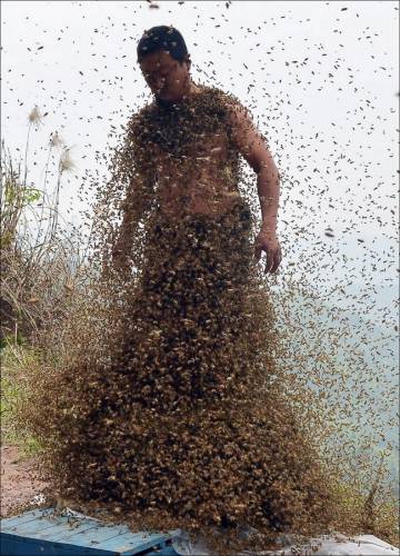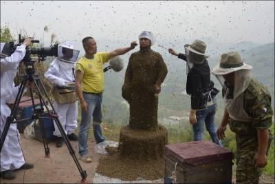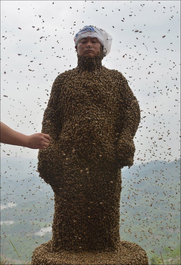 Չինացի մեղվապահը աշխարհի ռեկորդ է գրանցել` իրեն ամբողջովին ծածկելով մեղուներով:Նա իր վրա է հավաքել 460 հազար մեղու, 46,65կգ. ընդհանուր քաշով: