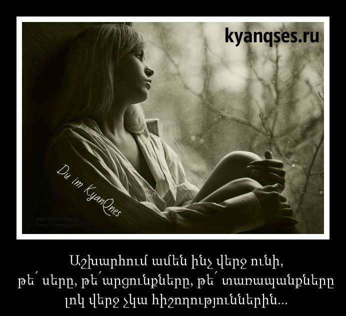 Աշխարհում ամեն ինչ վերջ ունի, թե՛ սերը, թե՛արցունքները, թե՛ տառապանքները, լոկ վերջ չկա հիշողություններին...