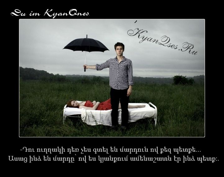 Դու ուղղակի դեռ չես գտել են մարդուն ով քեզ պետքե..... -Ասաց ինձ են մարդը՝ ով ես կյանքում ամենաշատն էր ինձ պետք: