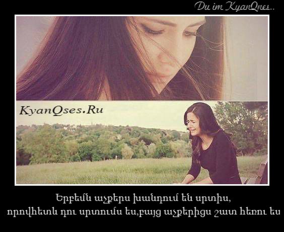 Երբեմն աչքերս խանդում են սրտիս,որովհետև դու սրտումս ես,բայց աչքերիցս շատ հեռու ես