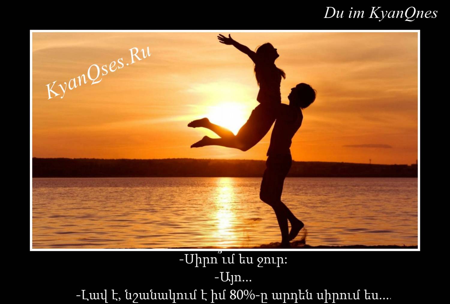 -Սիրո՞ւմ ես ջուր: -Այո... -Լավ է, նշանակում է իմ 80%-ը արդեն սիրում ես..