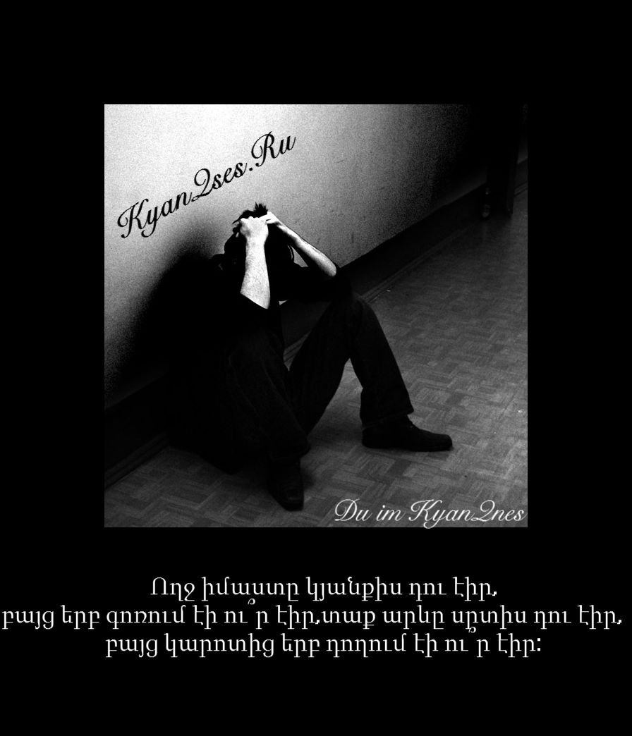 Ողջ իմաստը կյանքիս դու էիր,բայց երբ գոռում էի ու՞ր էիր,տաք արևը սրտիս դու էիր,բայց կարոտից երբ դողում էի ու՞ր էիր: